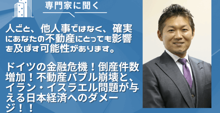 こんにちは、不動産売却マスターの西です 人ごと、他人事ではなく、確実にあなたの不動産にとっても影響を及ぼす可能性があります。 ドイツの金融危機!倒産件数増加!不動産バブル崩壊と、イラン・イスラエル問題が与える日本経済への … 続きを読む ドイツの金融危機!倒産件数増加!不動産バブル崩壊と、イラン・イスラエル問題が与える日本経済へのダメージ!!